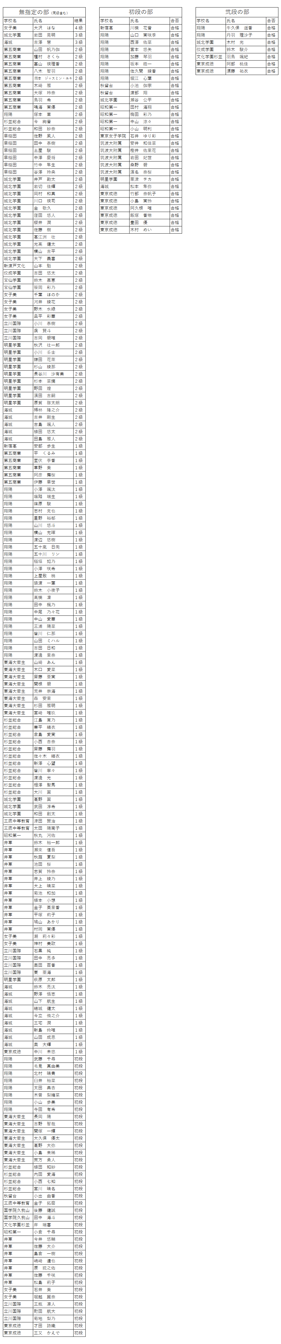 令和2年度 第2回第三地区審査 中高生の部の合格者をお知らせいたします。
