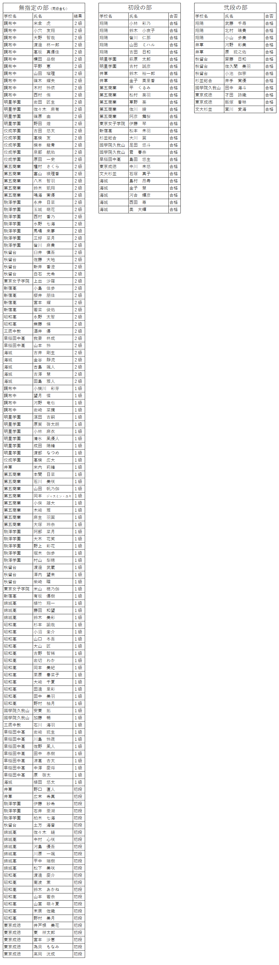 ※初段、弐段は合格者のみ。