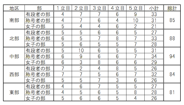 優勝 中部地区、準優勝 北部地区