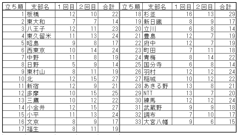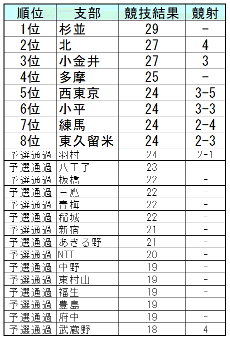出場全支部の結果