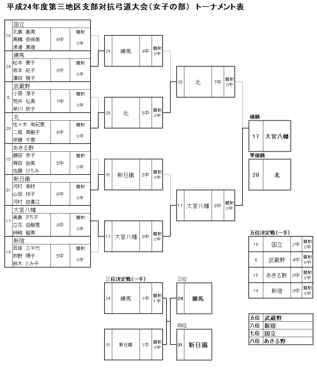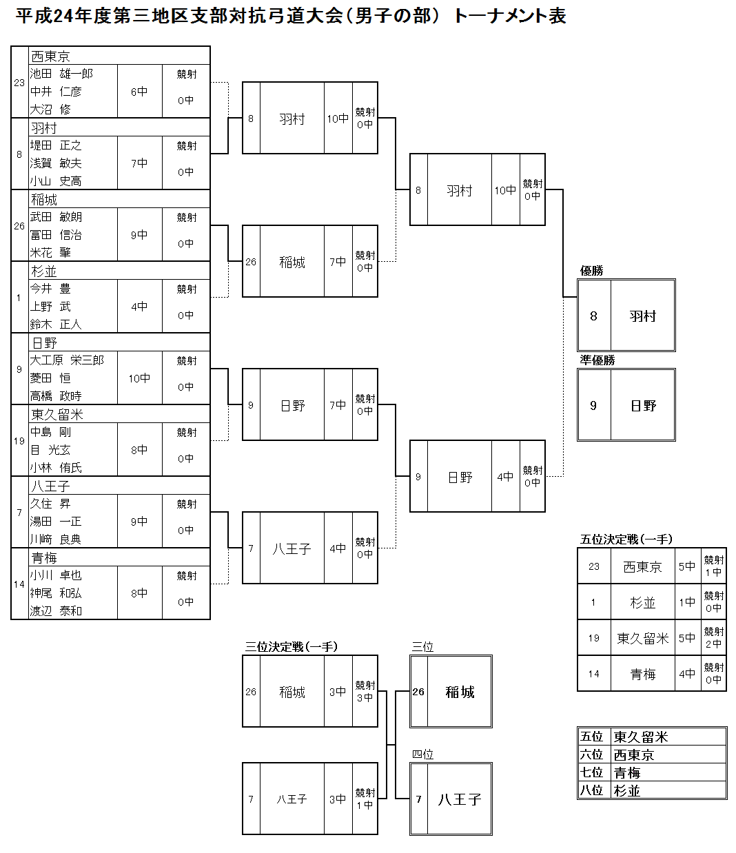 平成24年度 東京第三地区支部対抗弓道大会 結果
