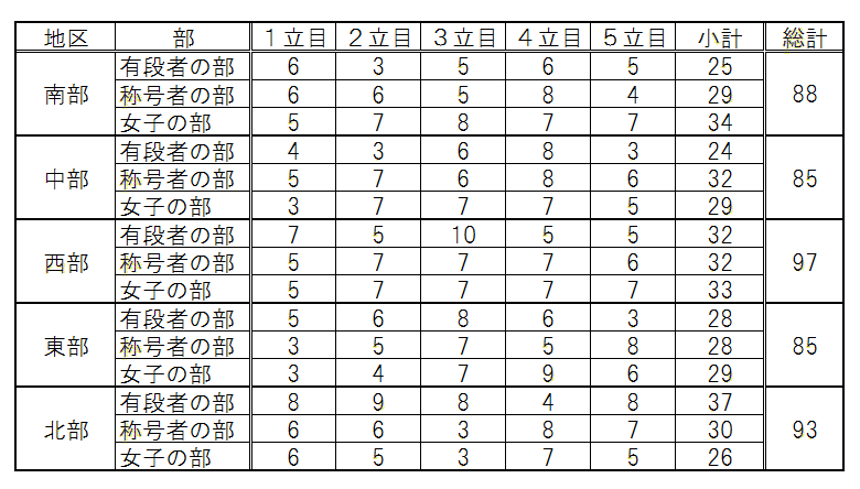 優勝 西部地区、準優勝 北部地区