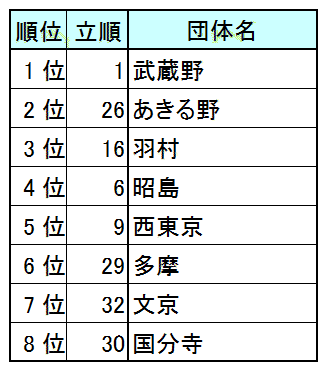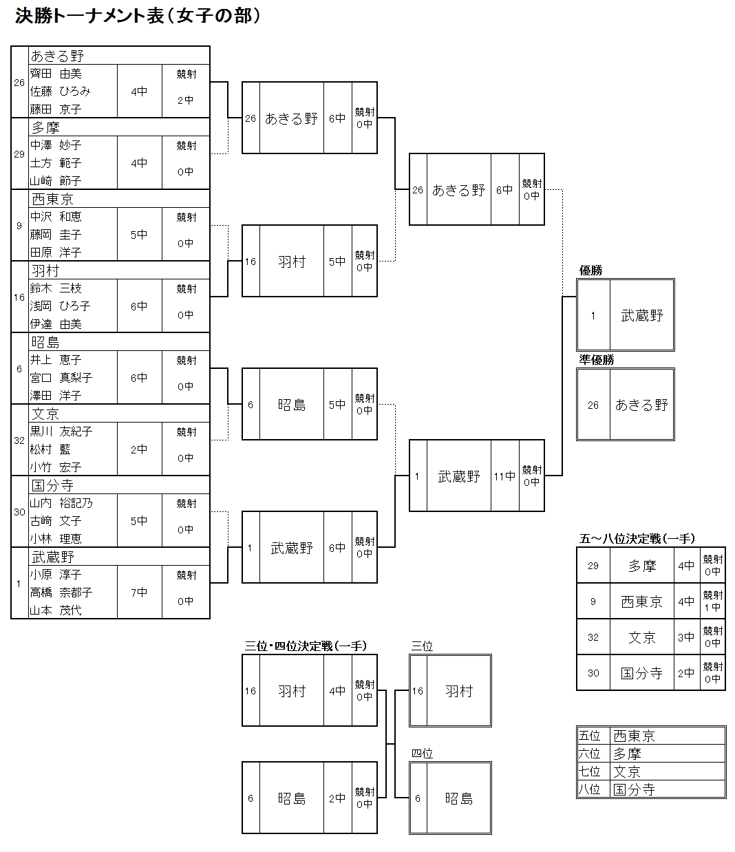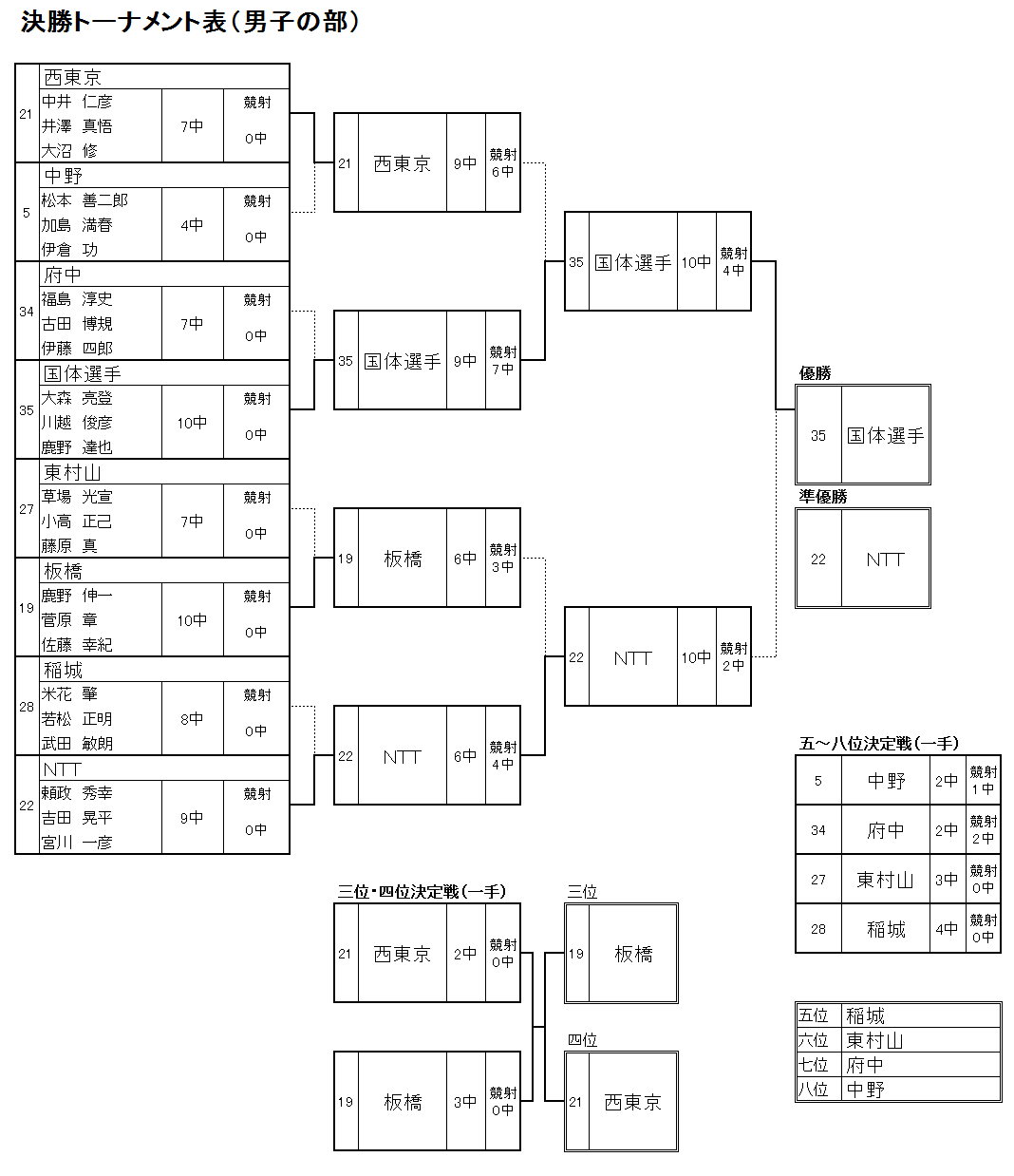 8位 は、予選9位の新宿、三鷹支部の競射により決定。