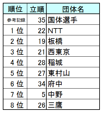 ※国体選手は参考記録の為、支部対抗順位外となります。