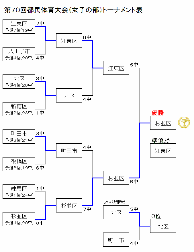第70回 都民体育大会 女子の部 結果