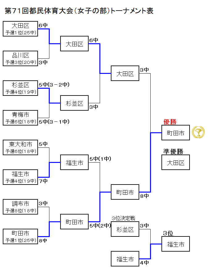 第71回 都民体育大会 女子の部 結果