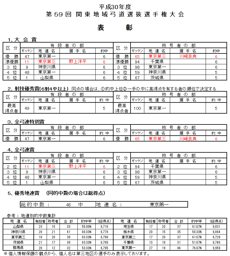 第59回関東選抜弓道選手権大会 結果