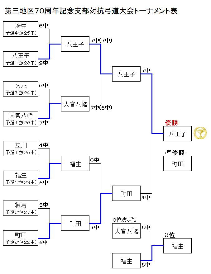 第三地区創立70周年記念支部対抗弓道大会 結果