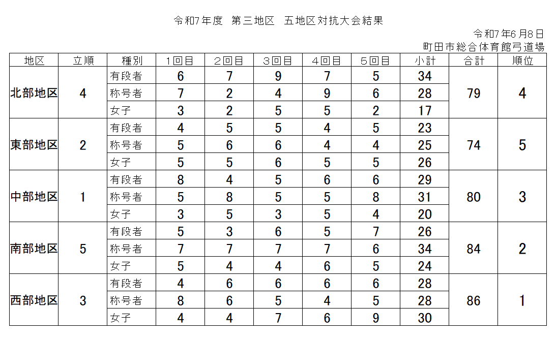 五地区対抗弓道大会(町田市総合体育館弓道場)